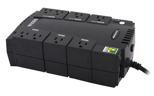The CyberPower Standby CP550SLG UPS safeguards a home office PC and other electronics (monitors, scanners, speakers, CD/DVD/MP3 players and more) from surges, sags, brownouts and other power disruptions. The CP550SLG provides surge protected, battery backup and features 550VA/330 Watt capacity, GreenPower UPS technology, 8-NEMA 5-15P receptacles, (4 wide-spaced), Compact design, 1- USB port, phone/fax (RJ11) line protection, EMI/RFI filters, PowerPanel UPS management software ; GreenPower UPS - Advanced energy-saving circuitry that reduces UPS energy costs by 75%; USB Connectivity - HID compliant USB port enables full integration with built-in power management and auto shutdown features of Windows, Linux and Mac OS X; EMI/RFI Filters - Shielding against electromagnetic interference and radio frequency signals prevents line noise (humming) over telephone lines or audio systems; Transformer-Spaced Outlets – Widely-spaced outlets accommodate large transformer-based plugs; Mounting – mounting options: horizontal, vertical, cabinet, and wall ; LED Indicators/Audible Alarms - LED status lights indicate Power-On and wiring faults / Distinctive tones identify when the unit is running on battery power, is overloaded or when the battery is low